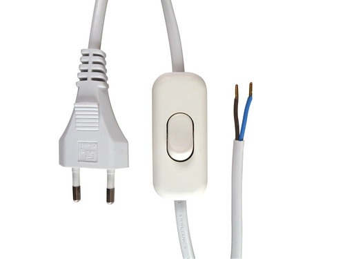 AANSLUITSNOER+SCHAKELAAR 2X0.75MM 2 METER WIT