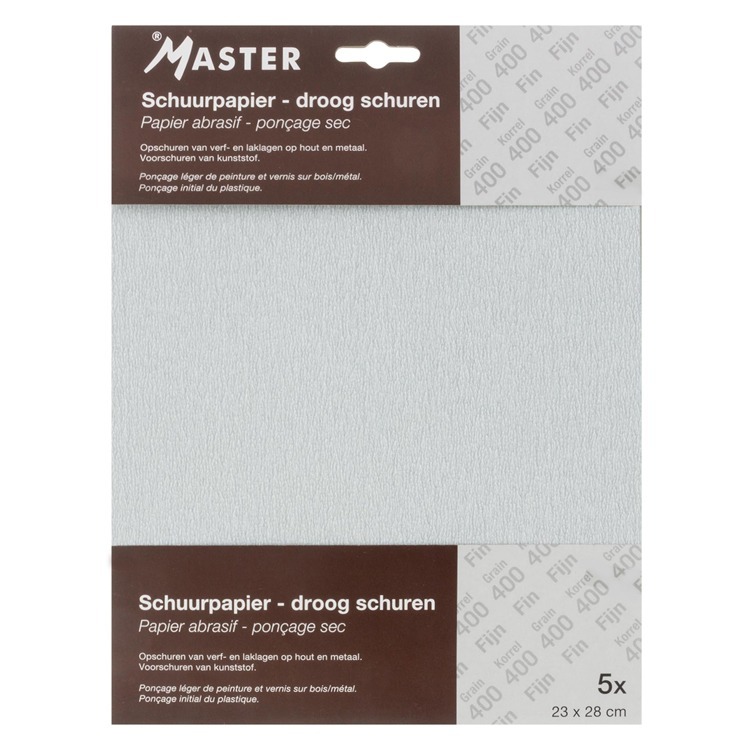 Droog waterproof schuren. Korrel: aluminiumoxyde.